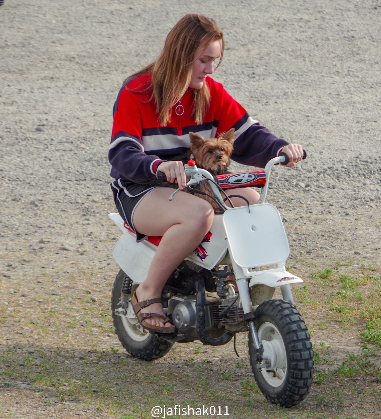 Riding around the picnic area enjoying the sunny weather.
